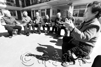 在一敬老院,老人们围坐在一起唱歌。本报记者 张晓科 摄