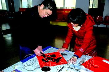 本报1月12日讯(记者 赵发宁 通讯员 隋瑜) 7日,秦楼街道祥园社区邀请了省书法协会会员陈为堂为社区书写对联、福字,随后社区工作人员将这些对联、福字送到了16户老人家中。 7日上午,记者来到秦楼街道祥园社区活动室,活动室内弥漫着春节的气息。原来,社区主任隋瑜邀请了省书法协会会员陈为堂为居民现场书写对联、福字。红彤彤的喜气、浓郁郁的墨香,一幅幅寓意吉祥的对联,饱含着社区对居民的美好祝愿。 6日,一直热心社区工作的74岁的成荣俊联系了祥园社区主任隋瑜,他说,自己的好朋友陈为堂写得一手好字,想送社区几幅对联。在成荣俊老人的联系下,7日一大早,陈为堂来到祥园社区,现场挥毫泼墨,一幅幅充满喜庆、吉祥、祝福、欢乐的对联在他的手中随笔而出。 “我喜欢书法,平时买字帖在家练字,这不快到春节了,老成就叫我来祥园社区写写对联。”陈为堂说,自己最喜欢王羲之和欧阳修的书法。 7日下午,社区工作人员为辖区16户老人家庭赠送了春联、“福”字,为他们送去了马年的第一个祝福。 99岁的张女士虽然有点耳背,但是看到社区工作人员手里的对联、“福”字,不禁高兴地说:“以前吃糠咽菜,现在天天白米饭,过年还有人送对联,越老越有福了。”85岁爱好书法的付先生也乐呵呵地说,“这个字写的好!手写春联就是有年味儿,谢谢社区经常关心我。” 农历马年春节临近,祥园社区近期还将组织开展“红红火火过大年”主题志愿服务系列活动,让辖区居民感受社区大家庭的温暖。
