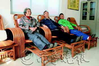 | 很多社区开设日间照料站,丰富居民社区生活(资料片)。 本报记者 姜文洁 摄 |  | 在社区日间照料站,老人躺在藤椅上休息(资料片)。