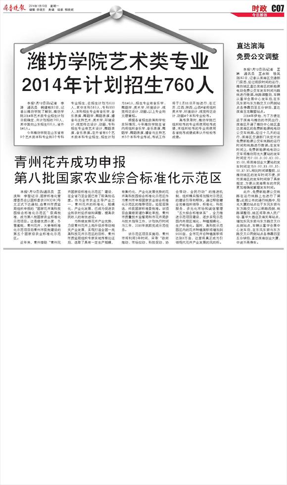 潍坊学院艺术类专业2014年计划招生760人