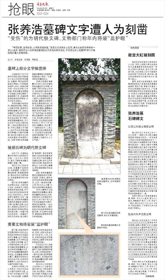 张养浩墓碑文字遭人为刻凿