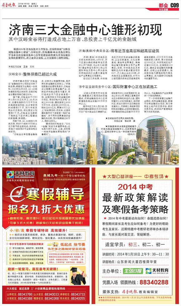 济南三大金融中心雏形初现