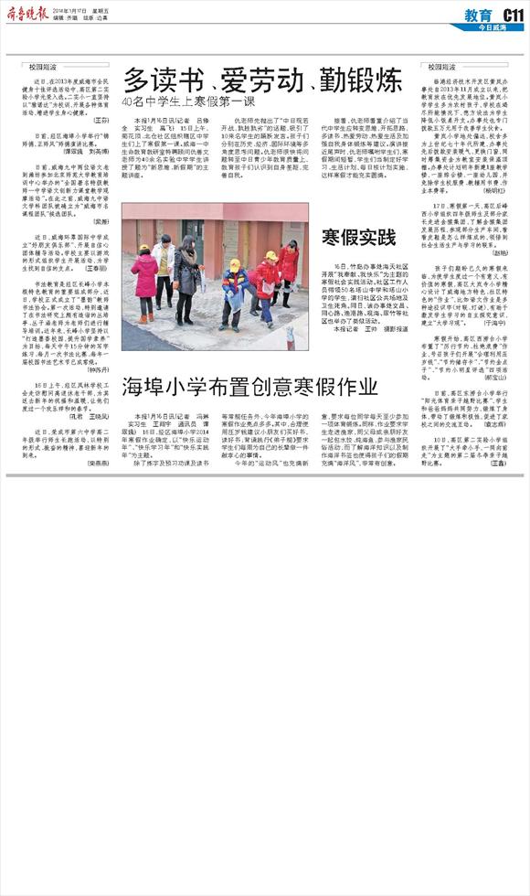 海埠小学布置创意寒假作业