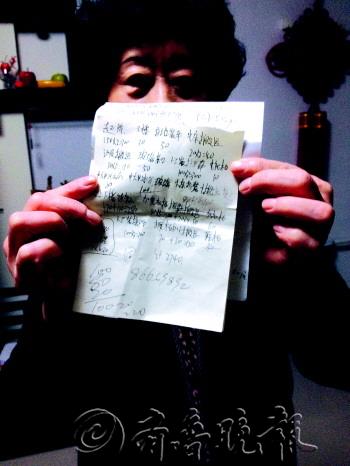 | 郝女士展示假蚂蚁的收费清单。本报记者 任磊磊 摄 |