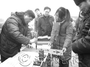 | 书法家正为村民书写春联。 本报记者 赵念东 摄 |