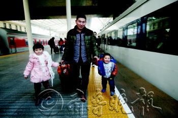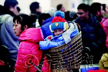 在火车站的人流中,跟随家长的娃娃们成了春运大军中的一道风景线。相比父母们赶火车的辛苦,吵闹、嘈杂的环境中他们能轻易发现纯粹的快乐。 在春运的快节奏中,他们可以尽情嬉笑打闹,可以马上见到老家的小伙伴……只要有爸爸妈妈在身边可以依偎,就是幸福的地方,就是一个家。有了家人的保护,春运对于他们而言并不那么辛苦,甚至于就是一场简单不过的旅行。 本报记者 张晓鹏 杨广帅 摄影报道