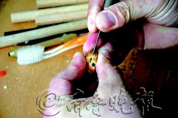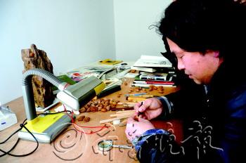 |  | 吕晓明在精心地雕琢。