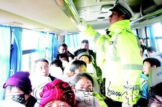 20日,山亭交警大队组织民警在客运车站等处开展安全检查和宣教工作,对过往7座以上客运车辆进行逐车登记检查,详查车辆安全设施配备情况、GPS使用情况,对发现存在安全问题的立即责令现场整改。图为民警在客车上检查是否装有危禁物品。 本报通讯员 张雷 丁永锋 本报记者 袁鹏 摄影报道