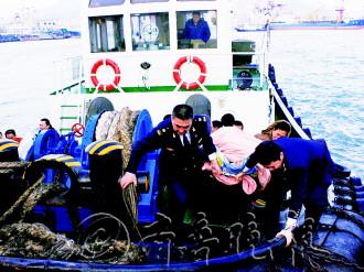 21日5点45分,威海海事局海上搜救中心接到报警,在威海石岛港外锚地锚泊船舶“华顺达1”上的一位船员脑血栓发作,出现昏迷状况。搜救中心联系荣成第二人民医院派出专业医生,与海事执法人员一起出海救助。目前船员已脱离了生命危险。