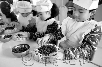 1月21日,聊城市江北水城幼儿园举行“做花糕、学民俗”活动,让孩子们自己动手学做花糕,体验和感受春节民俗文化和乐趣。 本报记者 李军 摄