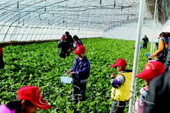 现代乡村游 果形美观、颗粒饱满,且有亮丽光泽,籽粒分布均匀密实,汁多肉厚,品尝后唇齿留香……在如此寒冷的季节里,能令人垂涎的水果非草莓莫属了。近日,记者来到沂源县鲁村镇于家石沟村安信农庄采摘基地,一反北方冬季的萧瑟和干枯,这里却是既热闹又温馨。 走进一号草莓棚里,随即被地上鲜红的草莓吸引,阳光的照射下,它们红得透亮。“从没见过这么大这么好看的草莓,关键是非常好吃,甜美极了。”正在采摘草莓的游客张女士大声地呼喊着同伴,像是发现宝贝一般,头也不抬地在地上搜索着。眼下正是草莓生长的好时节,安信农庄吸引了众多来自周边城市的游客,让萧条的冬季变得生动、有趣起来。 众所周知,沂源县是我省海拔最高的一个县,由于气候和自然条件得天独厚,造就了优美的风光和富饶的农业资源,这里农民收入的70%来自林果业,年产果品10亿公斤。如今,经过市场的引导和老百姓经营思路的转变,单纯的农业生产开始向农业观光转变,每年有三个季节都是沂源县旅游观光的好时候。不过,一到冬天,漫山遍野的苹果树都变成了“光杆”,为了丰富冬季乡村旅游,沂源安信农产品开发有限公司老总李第章将目标瞄向了有机农业。 “公司有22个有机蔬菜大棚,目前最受欢迎的观光体验项目是草莓采摘,专家们刚刚对我们的草莓做了鉴定,是绝对的精品优质草莓,很受游客们喜欢。现在农场刚刚起步,我的目标是为老百姓生产出最纯正的有机菜。”李第章话不多,却句句有分量,而观光农业也正是安信农场发展的方向。农庄还吸纳了几十个当地百姓在此打工,除了每月基本工资外,还可以从采摘作物中抽提成,解决了一部分留守在家的剩余劳动力。 作为我省2013年重点培育的乡村旅游示范县,沂源县近年来一直将建设现代农业园区、标准化农业生产基地和创建休闲农业观光景点有机结合,全县现已建成以安信农庄为代表的110处现代示范园区。这些园区立足生产、生态和生活三个层面,不断拓展都市农业的生态涵养、休闲观光、科普体验、文化传承等功能。 在沂源县,另外一个不能忽视的热闹地方还有张家坡镇阳三峪村,这是一个远近有名的特色养殖村。寒风料峭的季节,村支书田月水还在百里崖农场巡视着他所饲养的黑山鸡、黑山羊和黑野猪。“这三种黑色的牲畜,绝对是最原生态的食材。六万多只鸡在山涧里生长,从来不吃人工的饲料,味道自然也是最纯正的。”田月水骄傲地介绍着自己的“宝贝”们,正值置办年货、走亲访友的时节,每斤上百元的黑山鸡和黑猪肉根本不愁卖。 目前,在田月水的带领下,村里成立了旅游公司,旅游旺季的时候,大批游客到生态养殖场体验抓鸡、抓羊、捡鸡蛋、采摘等项目。村里还有养殖合作社和农产品供销社,村里多数农民开起了农家乐,有100多个劳动力供职于公司和合作社,有效地带动了农民发展旅游的积极性。 “由于交通和信息闭塞等原因,小山村的农民挣钱不容易,只能通过种庄稼、果树或者打工来养家。现在,我们利用良好的生态环境发展起了乡村旅游,不但增加了农民收入,还让他们增长了见识,生活变得更充实。”田月水介绍说,他正在筹划着将村里的农家乐标准化,借着全省重点发展乡村旅游的机会,将农民的生活水平再提高一个档次。 沂源县原副县长王本富曾经分管农业,几十年来,他见证了沂源县农业翻天覆地的变化。“发展乡村旅游,让老百姓的身份有了转变,从农业生产转向农业经营,也是第一产业向第三产业的转变,不但物质水平有了极大提升,精神生活也更加丰富,文明程度自然也有大的跨越。” □李芳芳