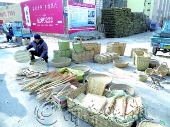 在日照大集上,还有一些传统的手工匠。牟宗春就是其中一个工匠,他已经拥有30多年的手艺,每逢年集都会来卖他编做的盖顶、箩筐等。 “现在很少有人有会买的了,等我们这一批会做的人不在了,估计市面上手工做的这些家什就很少见了。”牟宗春笑着说。 这些手工制作的箩筐,都是用削竹刀一点一点地将竹条从8厘米厚削成1毫米厚的竹片,再手工编制而成。“先把竹条紧密排放,再横着穿插竹条,将它编成圆形,作为竹篾的底。一个竹篾底大概由100条竹条编成。”他介绍。 “拴这个盖顶很讲究的,梃子要选实心的没有蛀虫的,这个线也要用结实的尼龙线,用专门缝这个的锥子和大针一根一根的拴起来,走线走得好才结实。”老顾客刘女士对牟宗春的手艺很是赞赏,“这样的盖顶盛饺子再好不过了。” “这都是祖祖辈辈传下来的手艺,是非常难得的。”一位前来购买盖顶的老婆婆笑着说。在牟宗春看来,编制竹筐没多少利润,挣不到钱,“但我就是放不下这门手艺。”