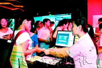 | 1月23日,不少市民在市区一家电影院购票。 |