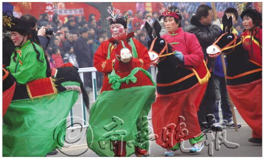 □ 贺年礼 莱芜“土特产”添年味 雪野农博园等餐饮单位的“贺年礼”销售专区或销售专柜,将集中销售莱芜市入选“山东100”的特色旅游商品,如莱芜姜制品、莱芜香肠、齐鲁老干烘、锡雕、布鞋、燕子石、雪野醉鱼等“贺年礼”产品。 莱芜往届民间艺术表演大赛。 资料片