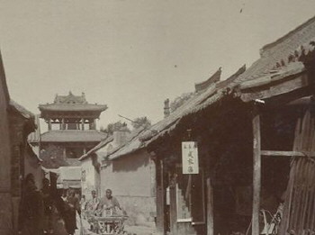 那么这口大钟有着怎样的来历呢?我曾看到过一张上世纪初的老照片。这是一位外国摄影师在1908年拍摄的钟楼影像。从图上看,钟楼为两层,十字脊屋顶,明昌古钟悬在半空。钟楼前的横街是东西钟楼寺街,竖街为南北钟楼寺街。