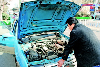 11日下午,市区昆明路家家悦超市门前,一辆出租车突发自燃,司机无法扑救。环翠消防北山路中队到场解除火情。图为车主检查车况,自燃原因尚不明确。