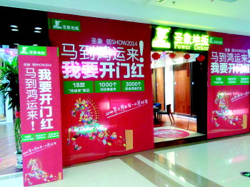 卖场内圣象地板的店面已经张贴上了“开门红”活动的海报