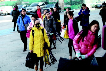 10日,在火车站东广场上,一些艺考考生带着行李和乐器准备买票。 杨广帅 摄