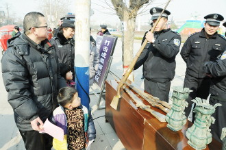 12日,峄城公安在仙坛苑广场集中展示了近期查获的一批非法枪支、假药、假文物等物品,并向过往群众介绍了相关案例。交警、消防等部门也在现场展开了便民咨询等服务项目。 本报记者 袁鹏 摄影报道