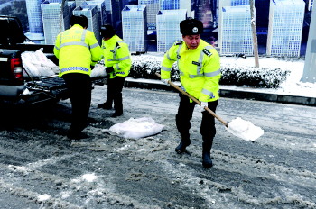 与此同时,高新交警对辖区重点路口、路段加大巡逻密度,采取撒盐粒、撒融雪剂等措施清除积雪,并积极协调督促辖区环卫部门加大清扫频次。执勤民警不畏严寒,警容严整,冒雪疏导交通,确保辖区路面安全畅通。