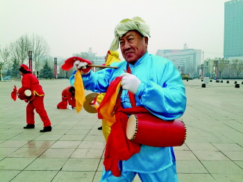◤腰鼓表演。