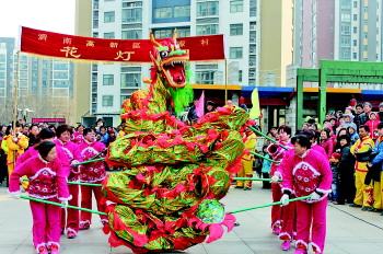 本报2月13日讯(记者 王富军 实习生 狄俊丽) 13日下午,由鑫苑物业举办的主题为“温暖鑫苑,欢鑫迎春”的第四届元宵节舞龙灯谜会在鑫苑国际社区北门举办。除此之外,元宵节期间,不少社区都有自己的元宵节目表演。