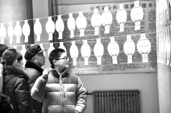 13日,市民正在济宁市图书馆猜灯谜。记者采访获悉,出于环保、节俭的理念,济宁市取消了元宵节焰火晚会,得到了广大市民的理解和支持。图书馆推出的“猜灯谜 赢大奖”活动,也受到了市民的欢迎。