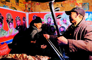 侄孙们经常在屋里陪老人拉曲唱戏解闷。