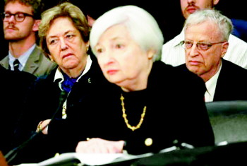 耶伦(前)和她的丈夫阿克洛夫(右一)。