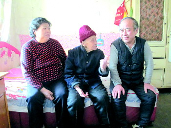 ◥杨京玲、苏有生陪王桂兰聊天。