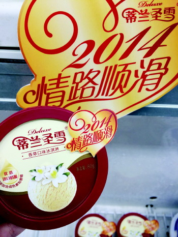 浪漫双节,不可缺少的就是浪漫气息。2014年全新上市的蒂兰圣雪冰淇淋,以“极致顺滑”的味蕾体验和“情路顺滑”的美好祝福赢得了情侣的欢心,成为情人节最受欢迎的礼物。顺滑冰淇淋,让情路在2014年更顺更长。