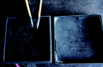 炭精画所用的毛笔和炭粉。