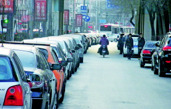 在市区一些路段,道路旁边经常停满了车,想要找个空车位非常困难。 本报记者 周青先 摄(资料片)