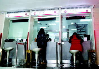 如今,商业银行和电商理财之间的竞争很激烈。图为18日市民在银行柜台办理业务。