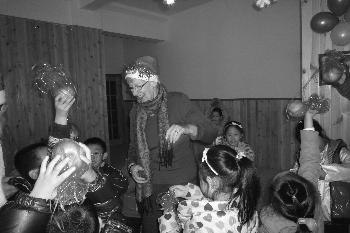 张店某幼儿英语培训机构里的外教在与孩子们做游戏。