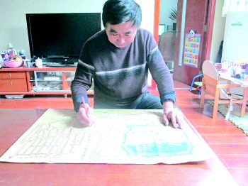 ◤杨宝生在修改历下区旅游图。