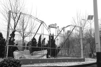 19日,在东方红路与解放大道路口,工作人员正在拆除春节前摆放的花灯。节后,在路口设置的多处花灯将被陆续拆除。 本报记者 马志勇 摄