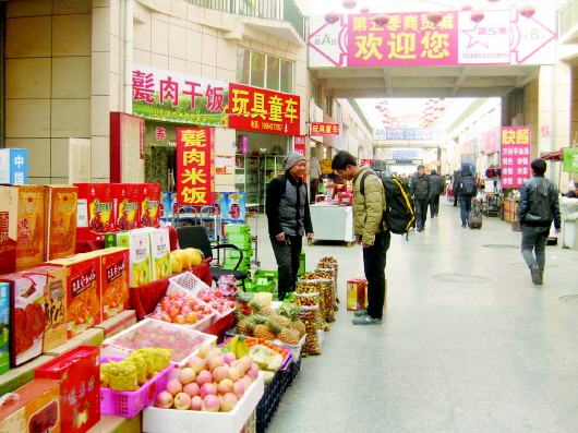 站内商店,一名乘客在买冬枣。