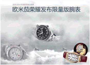 为庆祝2014年索契冬奥盛会,欧米茄特别创制了海马系列海洋宇宙“索契2014”限量版腕表,此表款有男表和女表可供选择,各限量2014枚。此外,欧米茄荣耀发布全新索契彼得格勒腕表,重现博物馆系列经典之作。