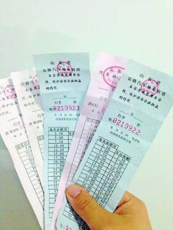 近日,市民小梁向本报反映,一月份他从火车站打车到铁道北路,上车后司机师傅表示,计价器坏了不能打票,可以给其他的车票。小梁心想,只要能报销都可以。可是拿到票后,是一张印有“山东省道路运输票证专章”的补充客票,司机告诉小梁,“这是在汽车站买的正规车票,报销没有问题。”