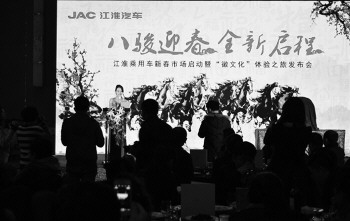 近日,“魅力江淮 皖美体验”江淮乘用车“八骏迎春”,暨“徽文化”体验之旅发布会在济南举行。江淮乘用车山东分公司领导、山东省17地市江淮4S店代表和省内主要媒体共同出席。江淮乘用车山东分公司总经理黄长江致辞,江淮乘用车山东分公司品牌总监冯乾宝为到场嘉宾讲解了“魅力江淮 皖美体验”活动的内容,并启动了本次活动。