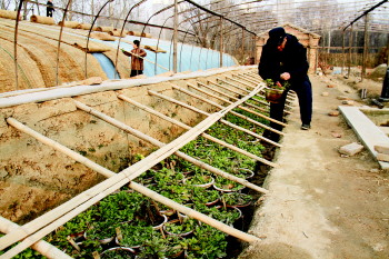 随着天气转暖,绿化和种植工作渐渐多起来。20日,在位于东方红路上的德州市园林处东苗圃内,管理员蔡师傅正在精心检查去年深秋时节培育的菊花苗。 本报记者 王小会 摄
