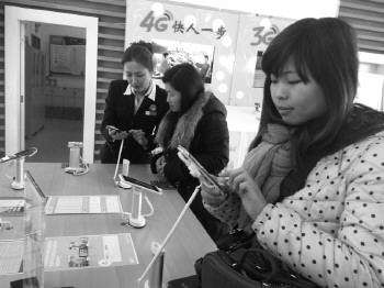 工作人员正在为市民讲解如何体验4G业务。