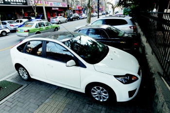 冯先生在山东路上一栋写字楼工作,由于单位没有停车场供员工使用,冯先生每次都停在人行道上,“周边有一些地下停车场车位对外出租,但每月至少要收1000元,超市停车场每小时收费虽然不高,但累积下来也是挺大一笔开销。停在马路边是要被交警罚钱的,停在人行道上要安全多了。”冯先生说。
