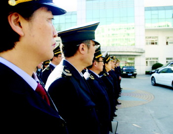 卫生执法人员整装待发。