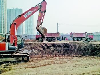 24日下午,二环南路高架文庄片区第二标段的施工现场,迁建工作已基本结束,大部分施工区已进行了地面夯实工作。