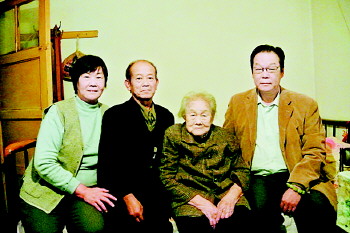 2013年11月1日,徐淑珍老人(右二)与儿子薛平南(右一)、三女儿薛英华(左一)、外甥陈声德(左二)合影。(资料片)