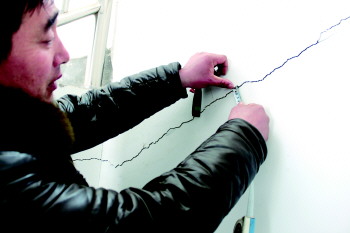 然而裴康英没想到的是,维修后四套房子墙体上的裂缝越来越严重。“其中一套卫生间里墙体里外都裂透了。”裴康英说,由于墙体裂缝越来越严重,所以房子一直租不出去只能闲着。“多次找开发商,对方都避而不见,让物业来处理。物业处理的方法也很简单,用胶带粘上再粉刷,没多久就又裂开了。”