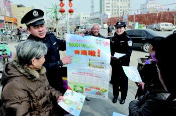 25日,定陶县公安局组织民警走上街头、广场等公共场所,向广大群众详细讲解开通“民生警务平台”的意义和拨打“9600110”警务热线电话的注意事项,让群众感受到“民生警务平台”的便捷、功用,真正搭建起警民沟通“连心桥”,提高群众满意度。 本报记者 赵念东 通讯员 朱建英 摄影报道