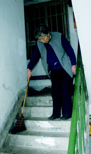 热心的刘瑞芝也时常参与社区活动,帮助清扫楼道。(图片由青岛市市北区政府提供)